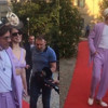 Lila rengi kıyafetleriyle kombin yapan çiftin görüntülerinde, Beren Saat''in kafasına taktığı ''Kraliyet şapkası'' dikkat çekti.