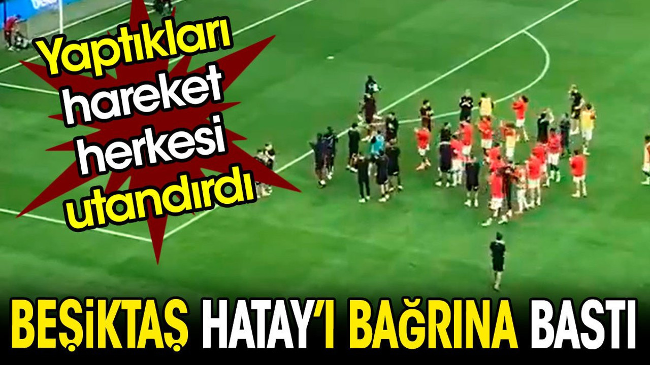 Beşiktaş ve Hataysporlu oyuncular el ele tutuşarak hep beraber tribünlere giderken Siyah-beyazlı taraftarlar ise oyuncuların bu hareketini dakikalarca alkışladı.