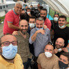 Yazlık kıyafetleri ile yağmura yakalanan gazeteciler, Beşiktaş Kulübü iletişim direktörü Bülent Ülgen ile birlikte günün anısına selfie çektiler.