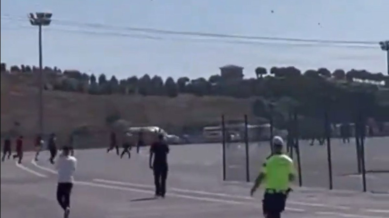 Derbi öncesinde sahanın çevresinde olan Beşiktaş ve Galatasaray taraftarları arasında kavga çıktı.