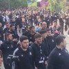 Yoğun güvenlik önlemleri ile otobüslerden inip stada doğru yürümeye başlayan taraftarlar Kadıköy’ü inletti.