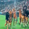 Takımları son 10 dakikada yediği 3 golle 2-0 önde olduğu karşılaşmadan mağlup ayrılan siyah-beyazlı taraftarlar, Luganolu oyuncuları tribünlere çağırarak üçlü çektirdi.