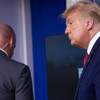 Salondaki muhabirlerin dışarı çıkmasına izin verilmezken, Trump bir süre sonra salona döndü.