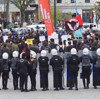 Giderek kalabalıklaşan öğrenci kitlesine karşı polis "eylemin kanunsuz olduğu"nu iddia ederek "dağılın" anonsu yapmaya başladı. Anonsa karşı öğrenciler kol kola girip sloganlarla karşılık veriyor.