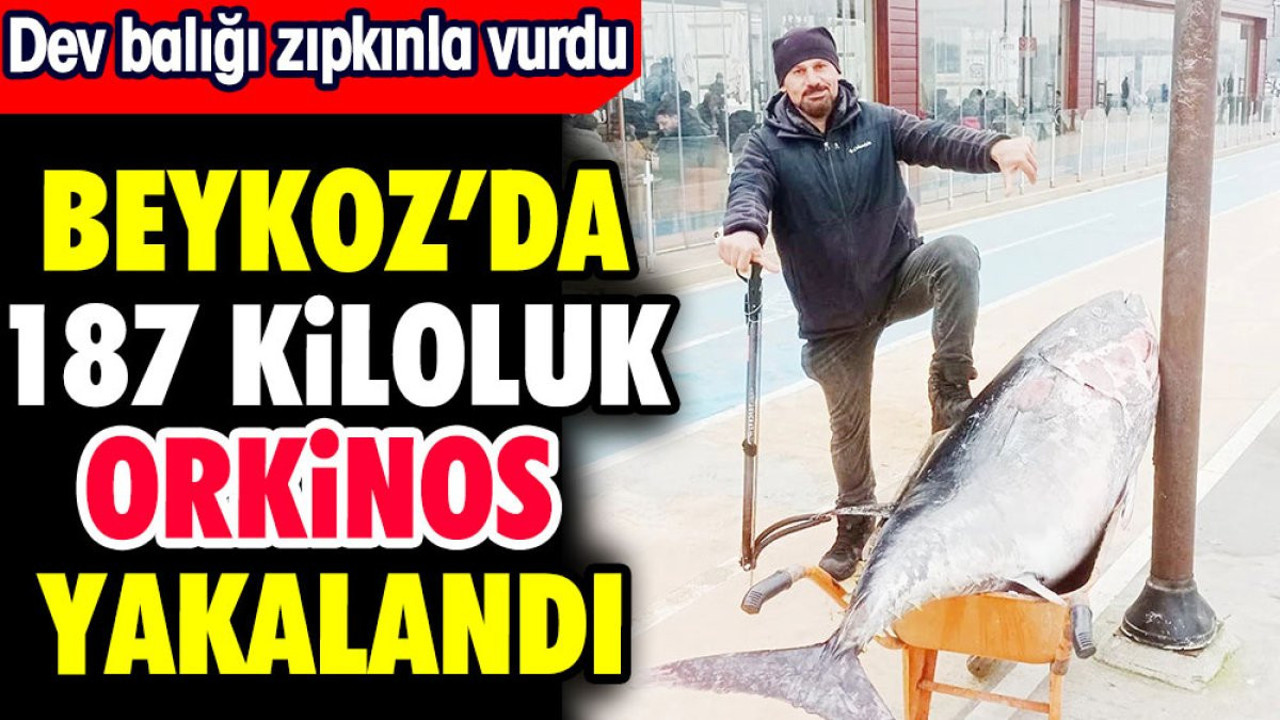 Beykoz Çubuklu sahilinde yakalan 187 kiloluk orkinos sosyal medyada ilgi odağı oldu.