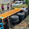 Beykoz''da sürücüsünün direksiyon hakimiyetini kaybetmesiyle kontrolden çıkan İSKİ''ye ait hafriyat kamyonu durağa çarparak dereye düştü.