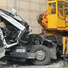 Çarpmanın şiddetiyle savrulan vinç, Tersane Caddesi'nden karşı şeride geçip bir iş yerinin duvarına çarparak durdu.