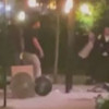 Bir süre sonra o kişilerin üzerine bıçakla saldırdı. Olayı gören kadınların çığlık sesleri o onları çeken bir kişinin cep telefonuna yansıdı.