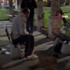 Büyükçekmece sahilde alkollü iki grup arasında henüz bilinmeyen bir nedenle çıkan kavgada bir kişi bıçakla yaralandı. Kanlar içerisinde bir banka oturtulan şahıs, ambulans beklerken horlayarak uyuyakaldığı anlar cep telefonu kamerasına yansıdı.