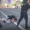 Biden’ın 9. Amerika Zirvesi’nin yapılacağı Los Angeles Toplantı Salonuna gittiği esnada megafonuyla yola atlayarak sloganlar atan kişiye polis sert müdahale etti.