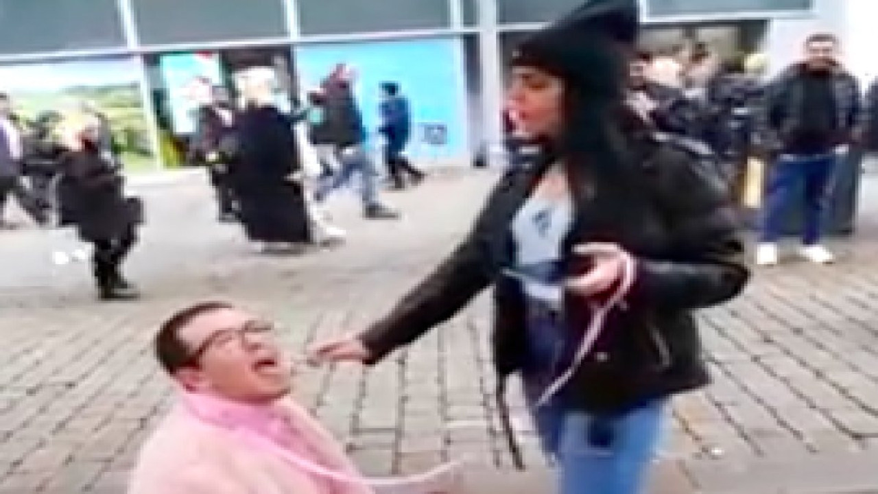 İngiltere'de bir kadın, sokakta boynunda tasmayla gezdirdiği adamın ağzına sigarasının külünü döktü, izmaritini yedirdi bir de tükürdü. Adamın halinden memnun tavırları sosyal medyada gündem oldu
