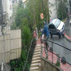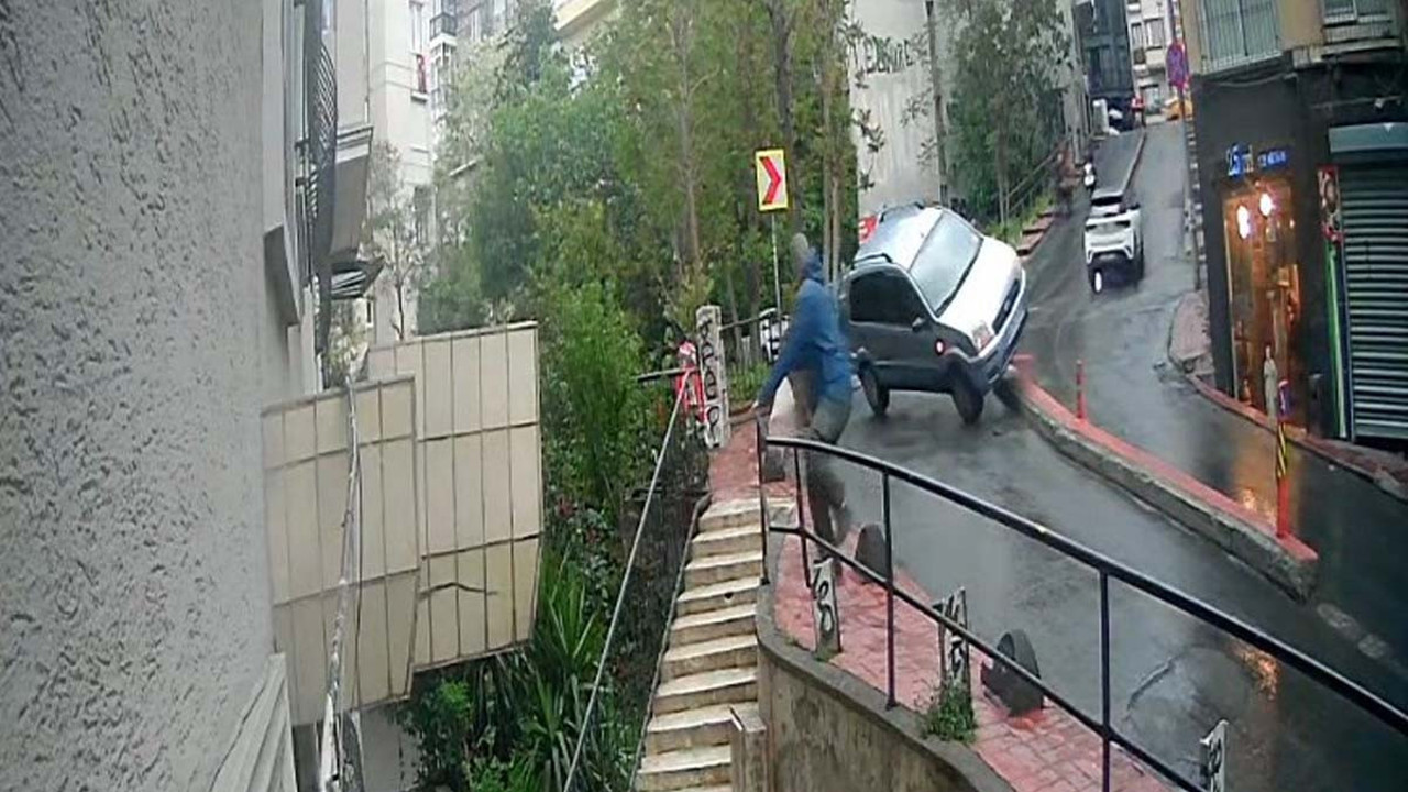 Kaza anı bir apartmanın güvenlik kamerası tarafından kaydedildi. Görüntülerde, yokuştan inen sürücü, karşı yönden gelen araçtan kaçmak için manevra yapıyor. O sırada aracının direksiyon hakimiyetini kaybeden sürücü refüje çarparak takla atıyor. Kaldırımda yürüyen kişi ise kazadan son anda kurtuluyor.Aracın altında kalmaktan son anda kurtulan yayanın yaşadığı korku kameralara yansıyor. Kaza yapan sürücü ise çevredekilerin yardımıyla otomobilden çıkarılıyor.Kaza sonra polis ekiplerinin inceleme başlatırken, otomobil daha sonra olay yerinden kaldırıldı.