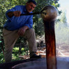Dededen kalma yöntemlere halen pekmez yaptıklarını belirten Erkan Özer, 100 kilo üzüm suyundan 35-40 kilo pekmez elde ettiklerini söyledi. Özer, "Yüzyıllardır bizim yaptığımız üzüm pekmezi dedelerimizden babalarımızdan bize kaldı. Önce bağdan üzümlerimizi topluyoruz. Daha sonra sıkma kazanlarımıza koyuyoruz. Doğal yöntemlerle üzümlerimizi güzel bir şekilde sıkıp ondan sonra suyunu toprak mayası ile mayalandırıp bidonlara koyuyoruz. Şeffaf bir şekle gelene kadar bidonlarda dinlendiriyoruz. Daha sonra kaynama kazanlarına bırakıyoruz. 100 litre üzüm suyundan yaklaşık 35-40 litre üzüm pekmezi çıkarıyoruz. 280 derecede üzüm suyunu kaynatıp bütün toksinlerini üzerinden alıyoruz. Hazır hale gelen pekmezimizi çevre illere ve dostlarımıza satıyoruz" diye konuştu.