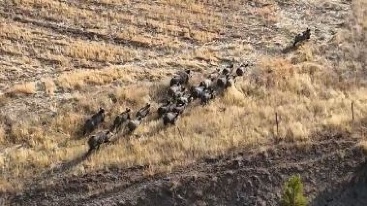 Ahlat ilçesinin Kulaksız ve Tahtısüleyman mahallelerinin üst kısmında yer alan ve içinde mağara ile kiliselerin bulunduğu Madavans Vadisi’nde dron uçuran bir içerik üretici fotoğrafçının kadrajına domuz sürüsü yakalandı.