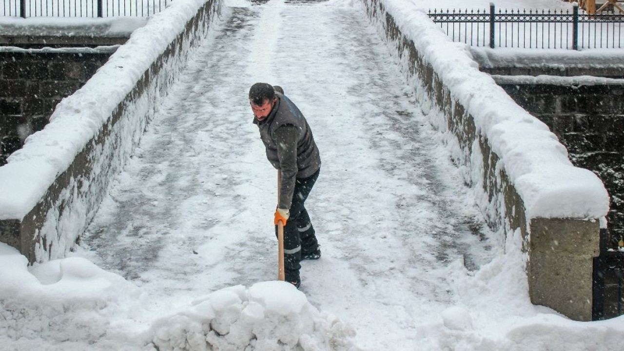 Belediye ekipleri, iş makinelerinin giremediği ara sokaklar ve merdivenlerde insan gücüyle karla mücadelesine devam ediyor.
