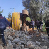 Mervan Öztekin'in kullandığı kepçe, istinat duvarında çalışma yapılırken duvarın aniden çökmesiyle yola devrildi.