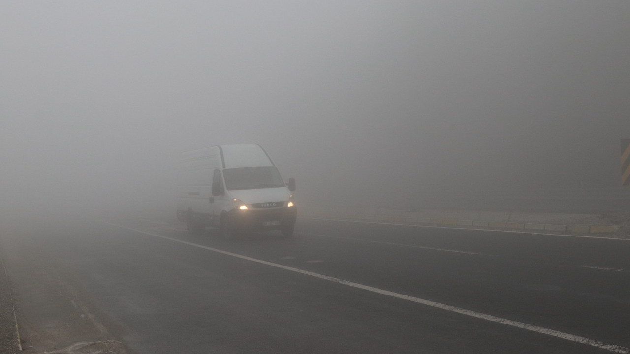 Ulaşımı olumsuz etkileyen sis nedeniyle sürücüler araçlarının dörtlülerini açarak ilerledi.