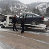 Yolun kaygan olması nedeniyle meydana gelen kazada şans eseri yaralanan olmazken, araçlarda maddi hasar oluştu.