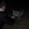 Vatandaşların yanına korkarak yaklaşan tilki, kendisine verilen etlerle karnını doyurdu.