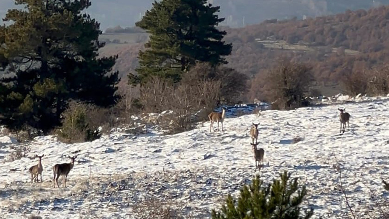 Kar nedeniyle ormanda yiyecek bulmakta zorlanan hayvanlar yaylaların yakınlarına inmeye başladı. Merkeze yakın bir bölgede bulunan yaylada, karaca sürüsü görüntülendi.