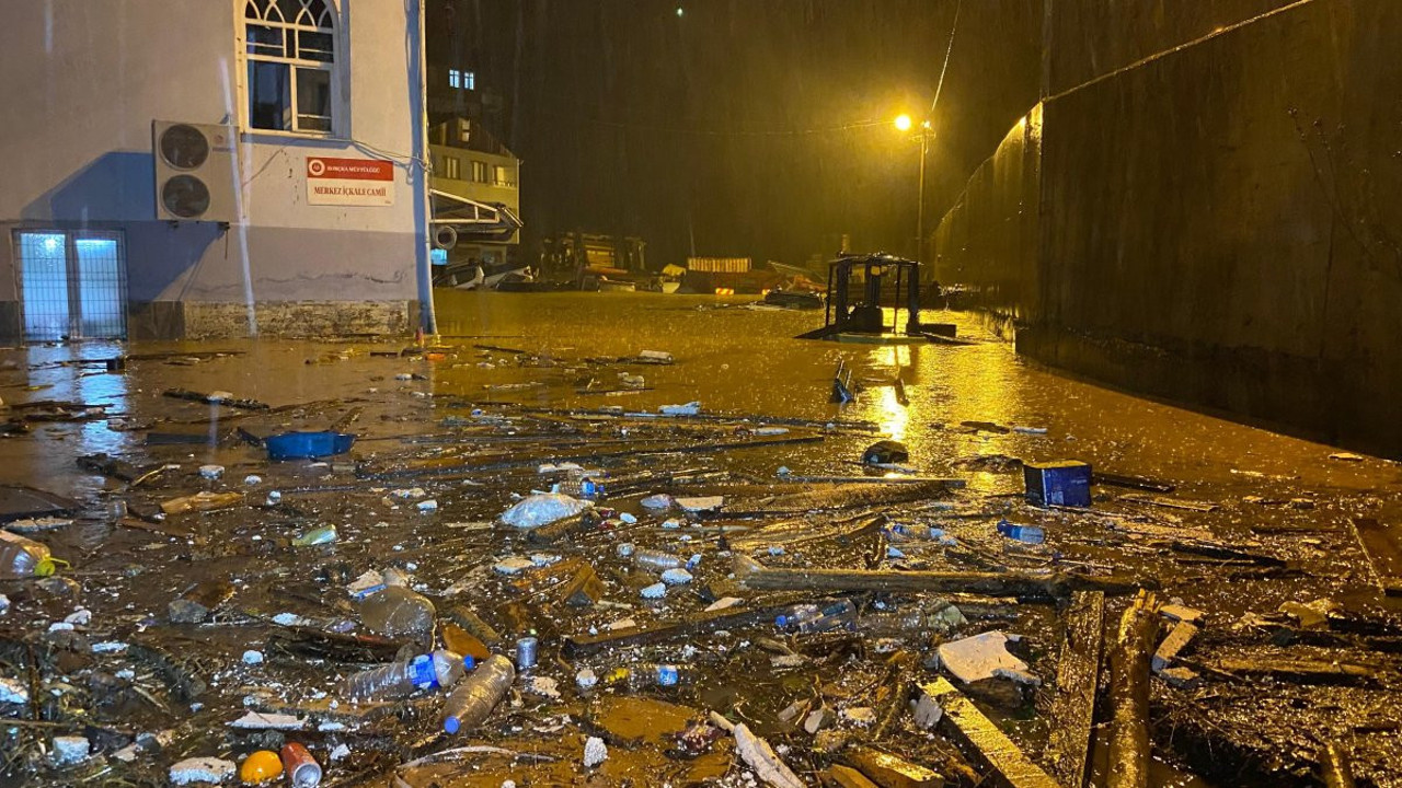 İlçede derenin taşması sonucu cadde ve sokaklar göle döndü.