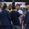 Sahaya giren bir görevlinin futbolcularla tartışması sonrası Arjantin Milli Takımı ve hakemler soyunma odasına gitti.