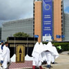 Çeşitli Müslüman ülkelerden 20 civarında gösterici, AB kurumlarının bulunduğu Schuman Meydanı'nda kurdukları Kabe maketi etrafında temsili tavaf gerçekleştirdi.