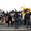Mont des Arts Meydanı'nda toplanan yaklaşık 50 kişi, hükümet yetkililerinden korona virüs salgınına karşı konulan kısıtlamaları kaldırmalarını ve ekonomik faaliyetleri yeniden başlatmalarını talep etti.