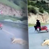 Kahramanmaraş'ta bir sürücü, motosikletin arkasına bağladığı köpeği metrelerce sürükledi.