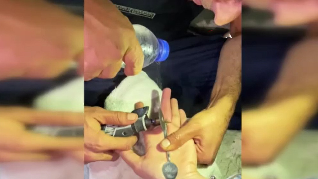 Kendi imkanlarıyla yüzüğü çıkaramayınca durumu 112 Acil Çağrı Merkezi'ne bildirdi. İhbar üzerine olay yerine Hatay Büyükşehir Belediyesine bağlı itfaiye ekipleri sevk edildi. Kısa sürede bölgeye gelen itfaiye ekipleri, spiral ile müdahalesi sonucunda yüzüğü sıkışan parmaktan kurtardı. Parmağına sıkışan yüzüğü çıkartılan vatandaş, itfaiye ekiplerine teşekkürlerini iletti.