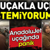 Yaşı küçük yolculardan biri korku dolu gözlerle ''Bu uçakla uçmak istemiyorum" diyerek yakınlarına sarıldı.