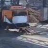 Sosyal medyada viral olan videoda, iş makinelerinin olduğu alanda bir makineden yuvarlanan beyaz varil tarzı bir bidon oturan adamın önünde duruyor. İş makinesi ise yere düşen varili alarak götürüyor.