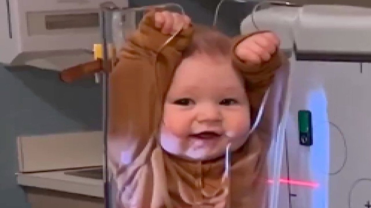 Bebeklerin kımıldamaması için özel olarak tasarlanan bir röntgen cihazıyla sevimli bir bebeğin röntgen çekilirken kayda alınan görüntüler, sosyal medyada gündem oldu