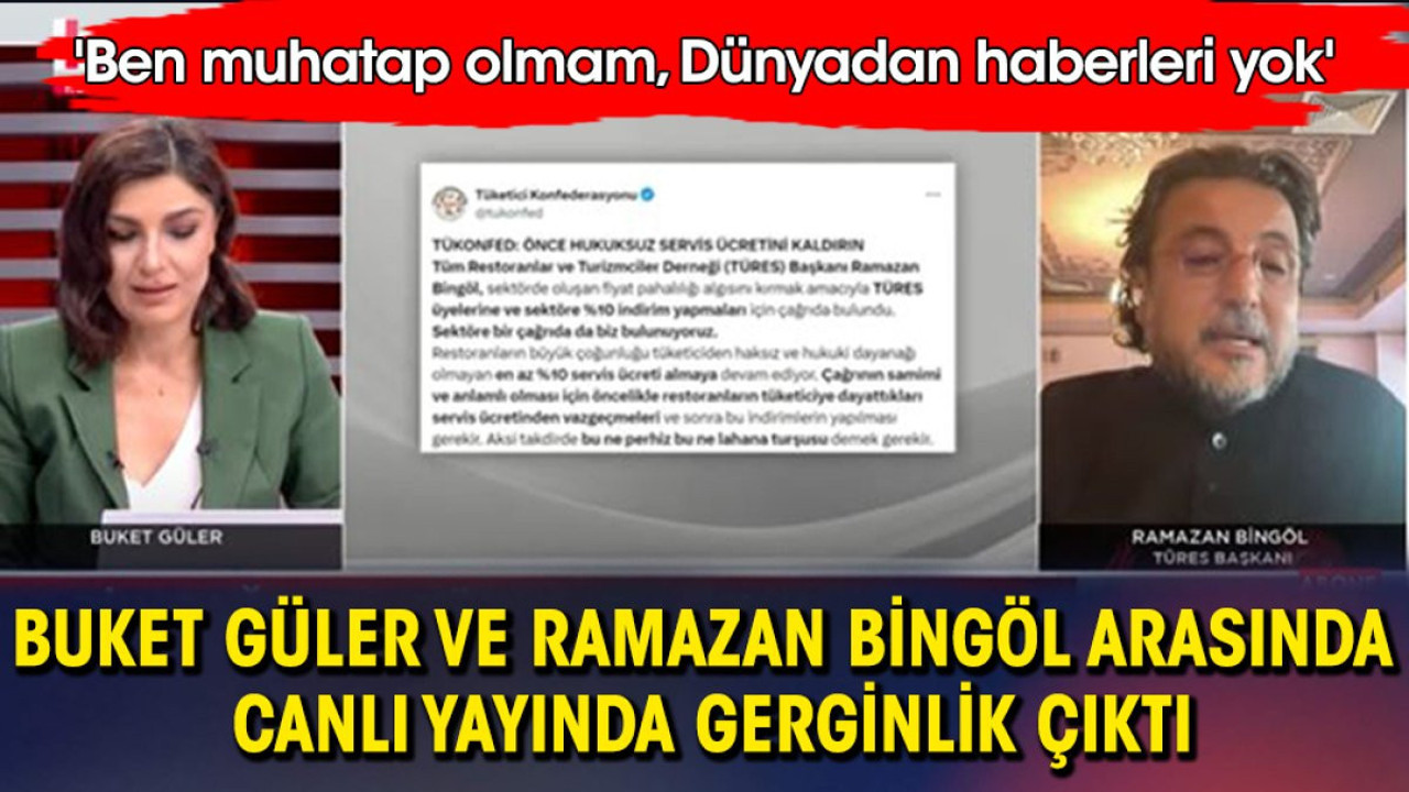 Haber Masası programında Buket Güler'in konuğu olarak yer alan TÜRES Başkanı Ramazan Bingöl, restoranlarda alınan servis ücretlerinin iptal edilmesi yönündeki talepler üzerine bir açıklama yaptı. TUKONFED tarafından servis ücretlerinin yüzde 10 oranında azaltılması yönünde yapılan çağrıyı eleştiren Bingöl, federasyonun konu hakkında yeterli bilgiye sahip olmadığını öne sürdü.
