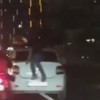 Olay gece saatlerinde Bakırköy D-100 Karayolu Topkapı istikametinde meydana geldi. Arızalı olduğu tahmin edilen bir otomobilin bagajının üzerine bir kişi otururken, bir motosikletli de ayağı ile otomobili itti.