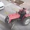 Güvenlik kamerasına yansıyan görüntülerde kırmızı ışıkta diğer araçlarla birlikte bekleyen ve en öne olan traktör sürücüsünün bir anda harekete geçip cedde üzerinde drift attığı anlar kayıtlara girdi.