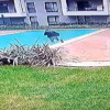 Kuryenin havuza düştüğü anlar sitenin güvenlik kamerasına yansıdı.