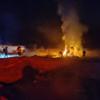Tanker, bariyerleri aşıp şarampole devrildikten sonra alev aldı.