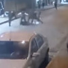 Direksiyon başındaki kişinin kontrolünü kaybetmesiyle gençler cadde ortasında yere savruldu.