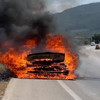 Edinilen bilgilere göre, dumanları gören sürücü, otomobili emniyet şeridine çekerken, dumanlar kısa sürede yerini alevlere bıraktı.