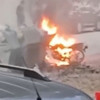 Alevler hızla motosikleti sardı ve çevredekilerin müdahalesi yetersiz kaldı. O anlar kameraya saniye saniye yansıdı.