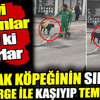 Temizlik görevlisi sokak köpeğini bir süre de severken, o anlar yüzleri güldürdü. Temizlik görevlisinin o anları, saniye saniye cep telefonu kamerasına yansıdı.