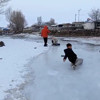 İp bağladıkları kızakla birbirini çekerek düşe kalka kayan çocuklar renkli görüntüler ortaya çıkardı.