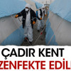 Sağlık İşleri Dairesi Başkanlığı ilaçlama ekipleri, Silvan Yolu üzerinde bulunan çadır kentte dezenfeksiyon ve biyosidal ilaçlama çalışması yürütüyor.