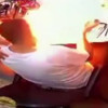 Parlama anında kolu ve saçları hafif şekilde yanan Yılmaz, kazayı ucuz atlattı. Çakmak gazı tüpünün parlama anı güvenlik kamerasına saniye saniye yansıdı.