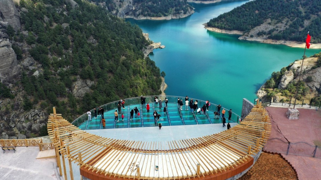 Kahramanmaraş'ın Onikişubat ilçesinde, baraj gölünden 160 metre yükseklikteki sarp kayalıklara yapılan Ali Kayası Cam Seyir Terası, ziyaretçilere eşsiz bir manzara sunuyor. Büyükşehir Belediyesi ve Doğu Akdeniz Kalkınma Ajansı (DOĞAKA) işbirliğiyle inşa edilen cam teras, Bulutoğlu Mahallesi'nde konumlanıyor ve kente gelen turistlerin ilgisini çekiyor. Özellikle Ramazan Bayramı tatili dolayısıyla bölgeye gelen ziyaretçiler, bu eşsiz manzarayı izlemek için terasa akın etti.