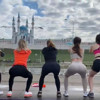 Rusya''ya bağlı Tataristan Özerk Cumhuriyeti''nin başkenti Kazan''da gerçekleştirilecek Kazan Maratonu öncesi bir grup genç kadın Kul-Şerif Camii''nin önünde spor yapmaya başladı. Bir kişi kadınların arkasından yaptıkları spor hareketlerini videoya aldı.