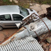 Karabük'ün Safranbolu ilçesinde etkili olan fırtına nedeniyle köy camisinin minaresi devrildi. Olayda, imamın park halindeki otomobili zarar gördü.