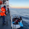 Sahil Güvenlik gemisi ve Sahil Güvenlik botları ile bölgeye giden ekipler, lastik bottaki 30'u çocuk, toplam 79 kaçak göçmeni yakaladı.