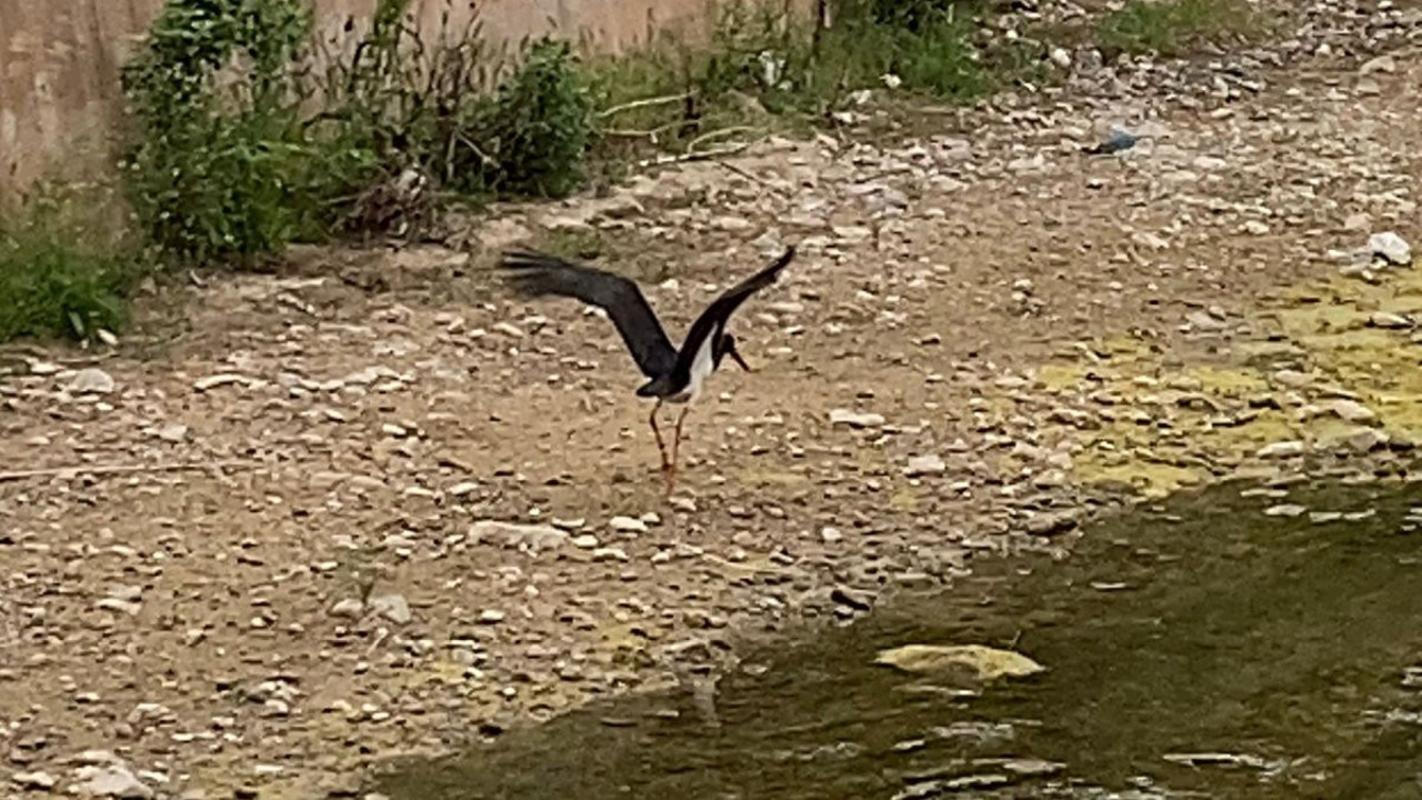 Çay üzerinde bir süre avlanan kara leylek ardından ise uçarak bölgeden uzaklaştı.